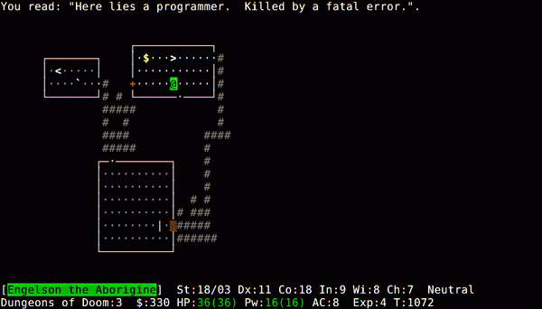 NetHack каждый раз создает новое подземелье. Даже авторы по-прежнему считают игру волнующей и захватывающей, не смотря на одержанные победы.
