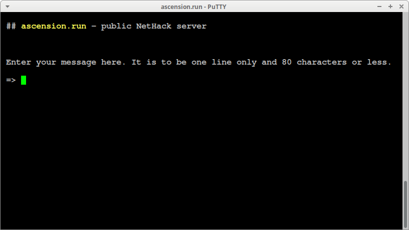 Для корректной отрисовки в Curses-интерфейсе или при игре в форки DynaHack, NetHack 4 или NetHack Fourk лучше позаботиться заранее о большом окне, выбрав в свойствах ярлыка Putty: Окно → Развёрнутое во весь экран: